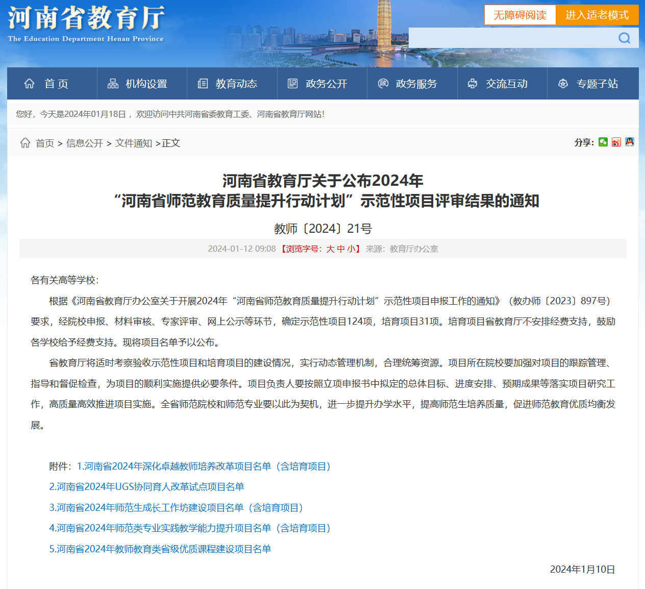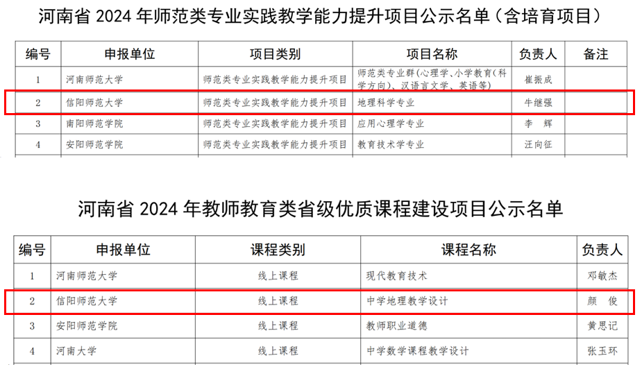 近日,河南省教育厅印发《关于公布2024年“河南省师范教育质量提升行动计划”示范性项目评审结果的通知》,学校共获批9项示范性项目,其中,太阳集团tyc234cc获批2项,分别是师范类专业实践教学能力提升项目1项和教师教育类省级优质课程建设项目1项。