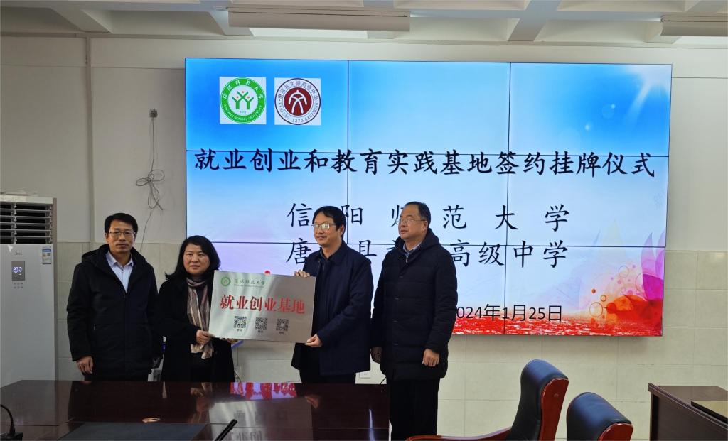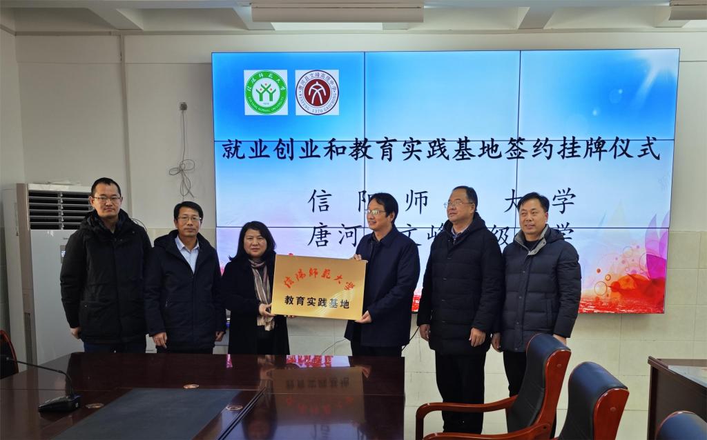 为深入了解学生校外专业实习情况,全面深化校企合作与供需对接,开辟更多优质实习和就业岗位,助力学生更高质量培养与就业,1月25日,我院党委书记宋力、副院长颜俊带领实习实训中心主任范宝伟、教学秘书刘晓咏赴唐河县文峰高级中学参加双方共建签约揭牌仪式。唐河县文峰高级中学校长吴国昌、副校长王旭春、副校长高希群、纪委书记王海淼和教务主任乔红欣等出席了仪式。