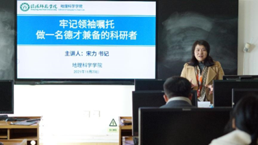 11月23日,太阳集团tyc234cc党委书记宋力于理科楼南楼603作了题为“牢记领袖嘱托,做一名德才兼备的科研者”的学术报告。我院副院长刘明华教授、研究生工作秘书闫军辉副教授、研究生班主任郑茜博士及全体研究生共80余人参加了报告会。报告会由刘明华教授和闫军辉副教授主持。