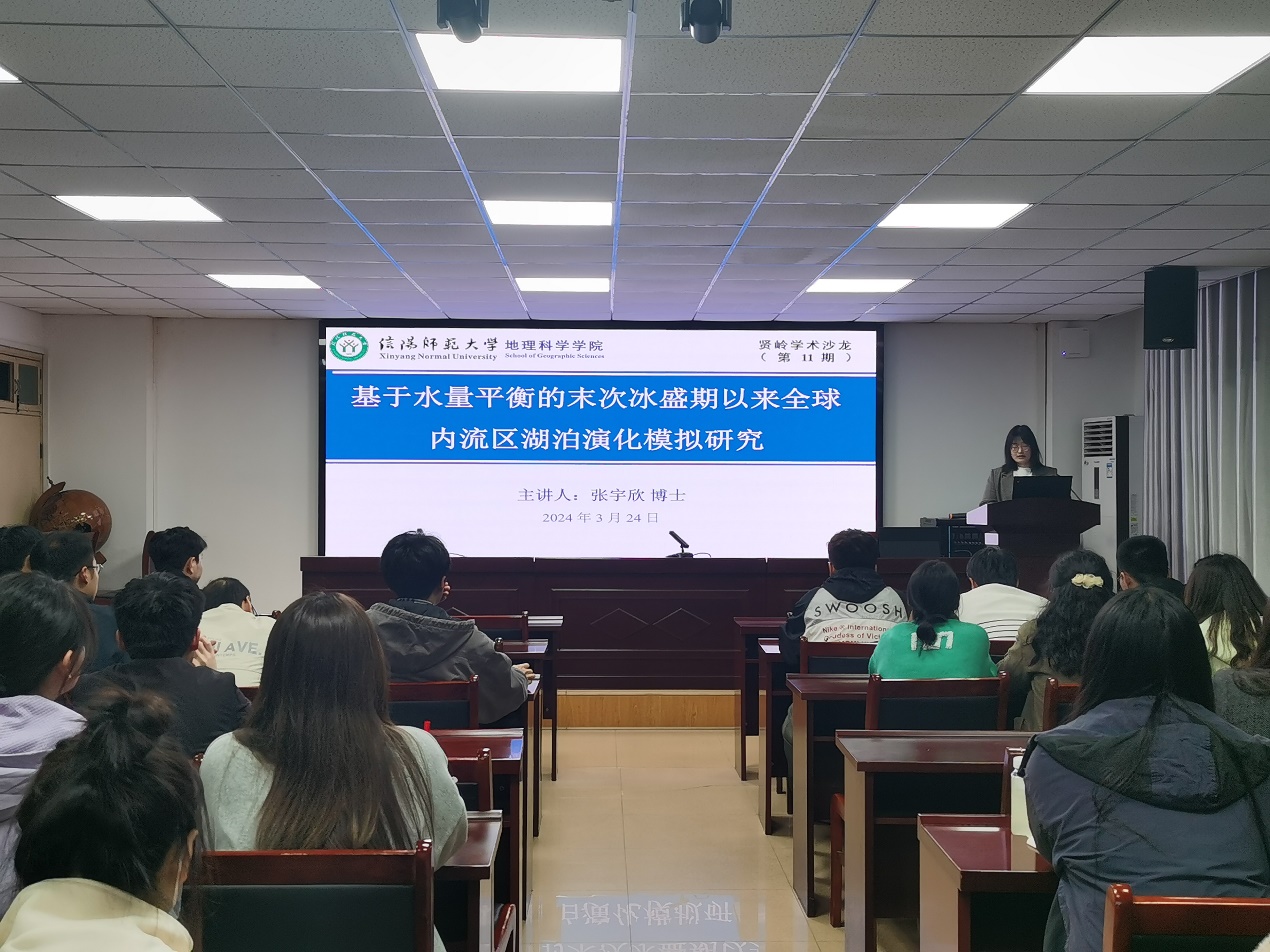 为进一步增进学术交流,拓展学术视野,3月24日,我院于理科楼南楼410会议室举办第11期贤岭学术沙龙。张宇欣博士应邀做了题为“基于水量平衡的末次冰盛期以来全球内流区湖泊演化模拟研究”学术报告,研究生60余人参加了报告会,会议由研究生班主任何伟纯博士主持。
