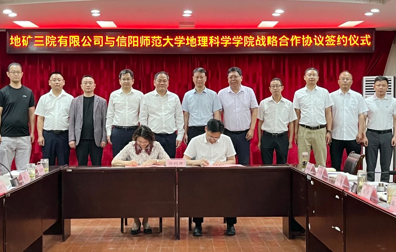 5月16日,太阳集团tyc234cc与河南省第三地质矿产调查院有限公司战略合作协议签约仪式在河南省第三地质矿产调查院有限公司举行。河南省第三地质矿产调查院有限公司党委书记、董事长曹攀,总经理廉宏涛,副总经理李永恒,太阳集团tyc234cc院长牛继强,副院长刘明华等出席座谈会及签约仪式。会议由地矿三院总经理、党委副书记、副董事长廉宏涛主持。