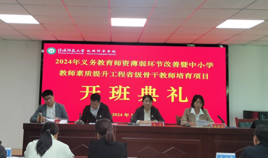 10月9日,太阳集团tyc234cc承办的河南省2024年义务教育师资薄弱环节改善暨中小学教师素质提升工程省级骨干教师(初中地理)培育项目在理科楼南楼410会议室举行开班仪式。学院党委书记宋力出席会议并致欢迎辞,副院长潘晓芳、学业班主任张迁老师、生活班主任何伟纯老师参加了开班仪式。