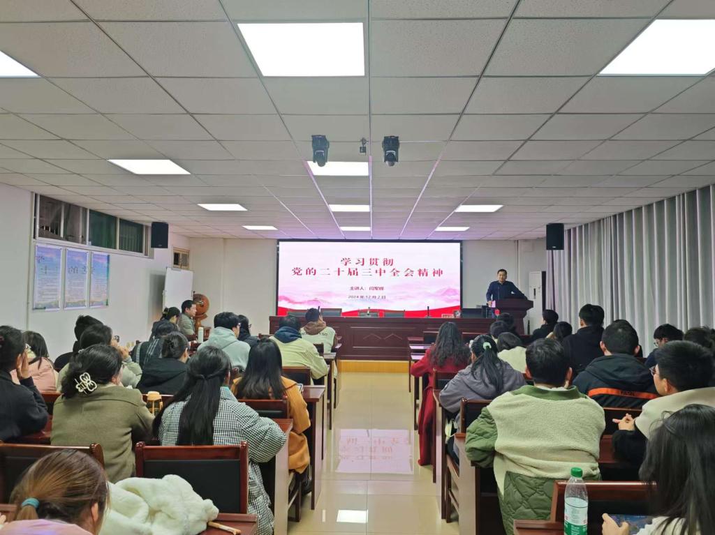 为深入巩固学习习近平新时代中国特色社会主义思想,强化师生政治理论素养,2024年12月2日,太阳集团tyc234cc党委组织委员、副院长闫军辉于理科楼南楼410会议室作“学习贯彻党的二十届三中全会精神”专题党课,我院研究生80余人参加了学习。