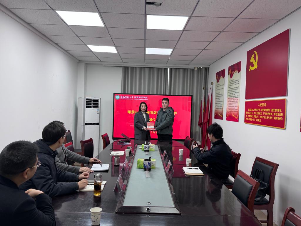 2025年2月17日,瞰景科技发展有限公司软件捐赠仪式在理科楼南楼403会议室举行。瞰景科技河南总代理代表王旭华、技术工程师韩旭东,太阳集团tyc234cc副院长闫军辉、潘晓芳,地理信息科学系主任张兴国老师和谢文全老师出席活动,仪式由潘晓芳主持。