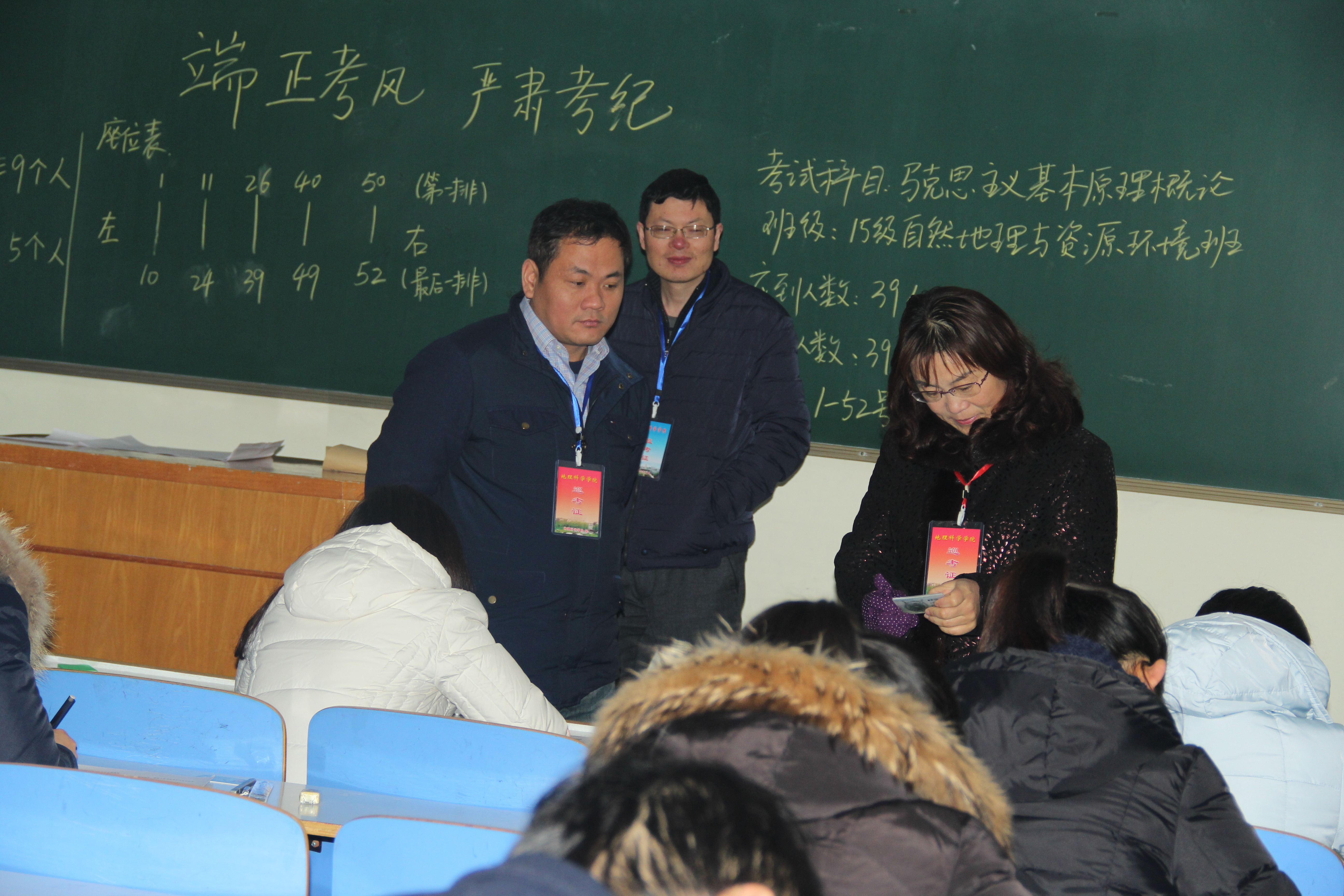 每天上午9:00和下午15:00,太阳集团tyc234cc各位领导就会准时到考试现场,认真察看考场安排、教师监考、学生考试及考场环境,并对监考老师的辛苦付出表示感谢。领导强调考风考纪建设的重要性,要求营造良好的考试氛围,以考风促学风,进一步树立优良校风,保证期末考试工作的有序进行。1月5下午,学院领导巡考后,对我院的考风和教师的监考大加赞扬。