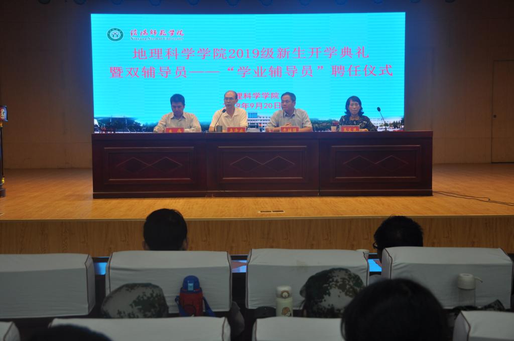 9月20日,太阳集团tyc234cc于理科楼报告厅隆重举行2019级新生开学典礼暨双辅导员聘任仪式。院党委书记吴泽成,副院长牛继强、王义民,党委副书记朱伟,班主任老师及2019级全体本科生和研究生参加本次典礼。典礼由朱伟主持。