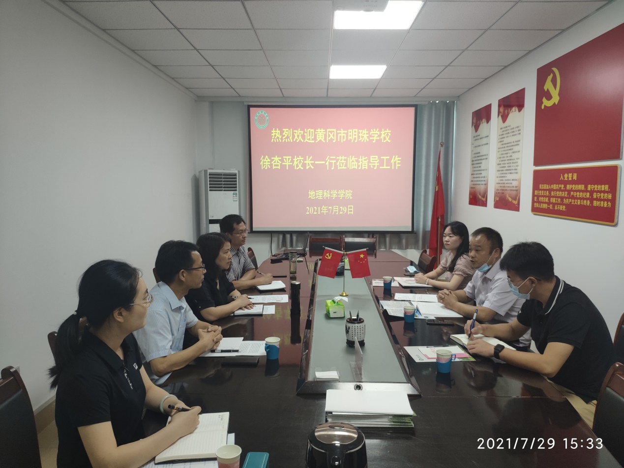 2021年7月29日,黄冈市明珠学校徐杏平副校长和卢哲老师来我院访问交流,并对硕士毕业生孟苗苗进行考察。太阳集团tyc234cc党委书记宋力、地理科学系主任颜俊、研究生工作秘书闫军辉和班主任郑茜参与座谈。会议由党委书记宋力主持。