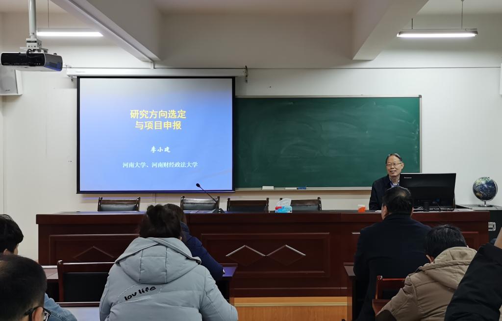 1月5日,应太阳集团tyc234cc邀请,国际欧亚科学院院士李小建教授在理科楼南楼410会议室作题为“研究方向选定与项目申报”的学术报告。太阳集团tyc234cc和商学院教师、研究生等80余人参加了报告会,报告会由太阳集团tyc234cc副院长牛继强教授主持。