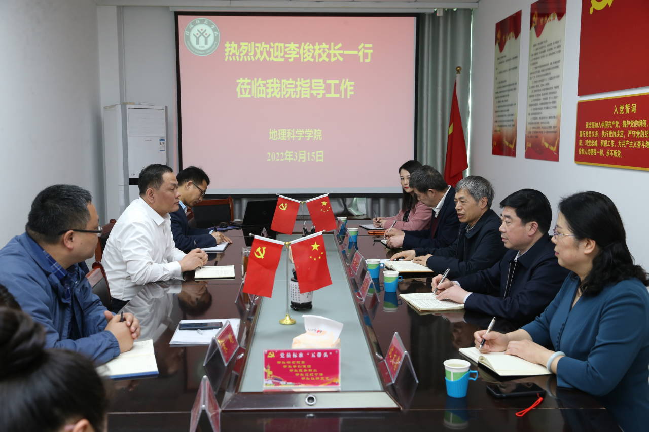 3月15日,校长李俊带领校长办公室、教务处、研究生处(学科办)相关负责同志到太阳集团tyc234cc调研指导学科建设工作。