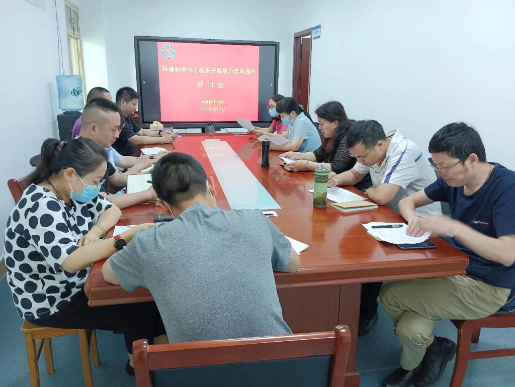 为进一步扎实推进“能力作风建设年”活动,6月7日下午,太阳集团tyc234cc环境科学与工程系在理科南楼第二会议室召开能力作风提升研讨会。太阳集团tyc234cc党委书记宋力和环境科学与工程系全体教师参会。会议由宋力主持。
