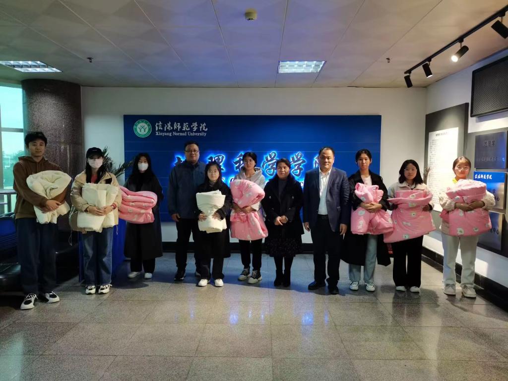 11月24日,我院于理科楼南楼开展“爱心棉被”发放活动。我院党委书记宋力、院长牛继强、党委副书记朱明、团委副书记曹鹏鹏及家庭困难学生参加。