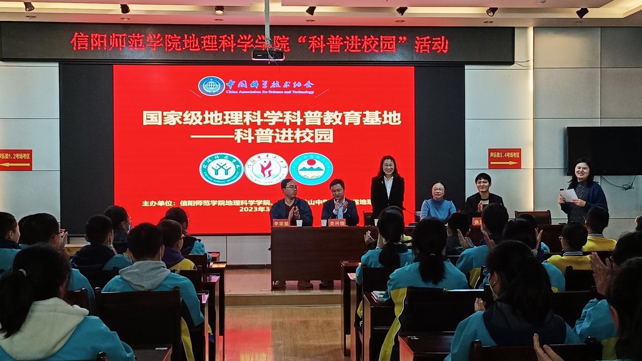 为加强科普资源助推“双减”常态化合作,3月27日下午,由我院组织的“科普进校园”活动在信阳市羊山中学藏书阁道德讲堂隆重举行。太阳集团tyc234cc副院长刘明华教授、史兴俊副教授、李宗盟博士及信阳市羊山中学陈晓晖副校长、徐立东老师、七年级学生代表参加了本次活动,活动由羊山中学熊晓方老师主持。