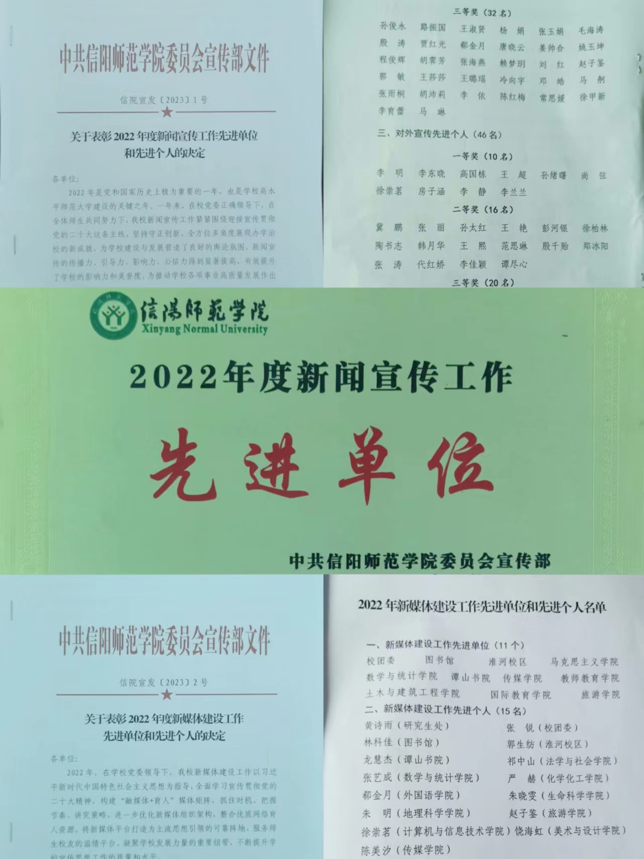 3月30日,学校召开2023年度宣传思想工作会议,对在2022年度新闻宣传工作中作出突出贡献的学院及先进个人进行表彰。我院荣获2022年度新闻宣传工作先进单位,朱明荣获新媒体建设工作先进个人、姚玉坤荣获对内宣传先进个人三等奖。