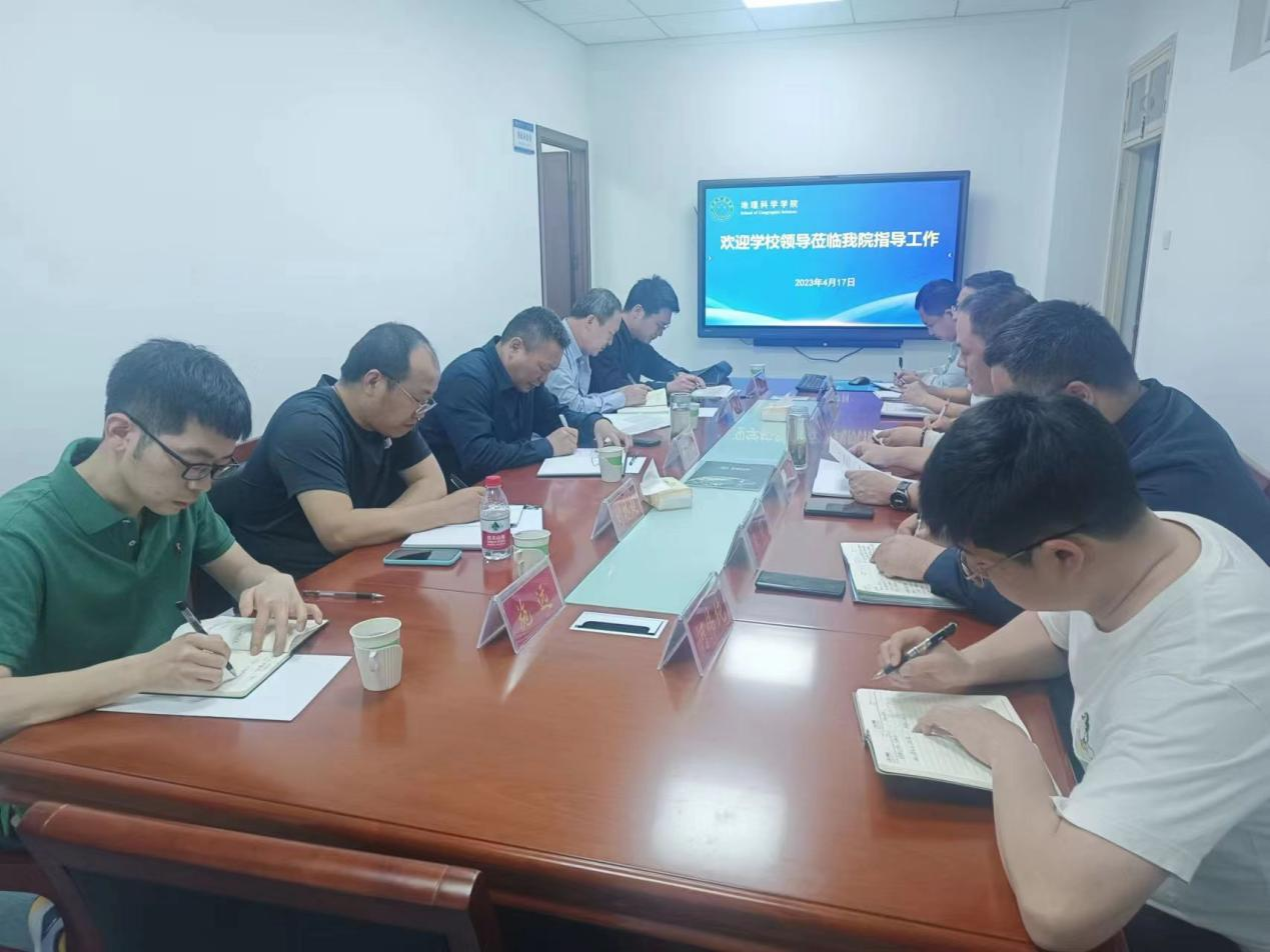 4月17日下午,副校长井强山带领科技处处长涂友超、副处长刘林超及相关同志莅临我院调研科研工作。太阳集团tyc234cc党委书记宋力、院长牛继强、党委副书记朱明、副院长颜俊及教师代表参加了调研,会议由科技处处长涂友超主持。