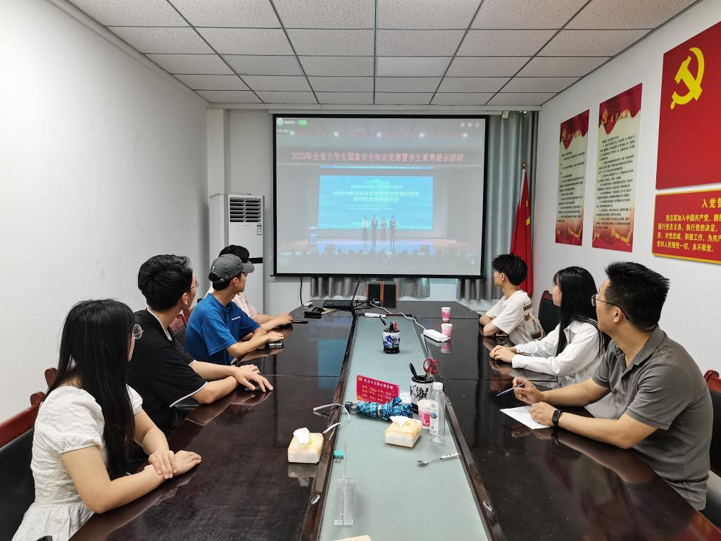 根据学校《关于组织线上收看2023 年全省大学生国家安全知识竞赛暨学生素养展示活动决赛的通知》要求,我院曹鹏鹏老师于6月9日在理科楼组织同学们共同观看了此次决赛。