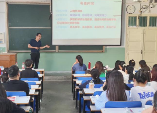 在讲座中,刘俊峰老师以历年地理高考真题为例,向我院师生们讲解地理教学的技巧以及新高考下高中地理的发展趋势,传授了教学经验以及面试技巧。接着,他以高中地理必修一“大气受热的过程”这一章节为例,为同学们呈现了一堂优质的地理教学课程。最后,同学们纷纷就地理教学问题进行发言提问,刘俊峰老师一一耐心解答,讲座获得圆满成功。