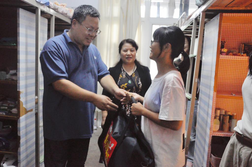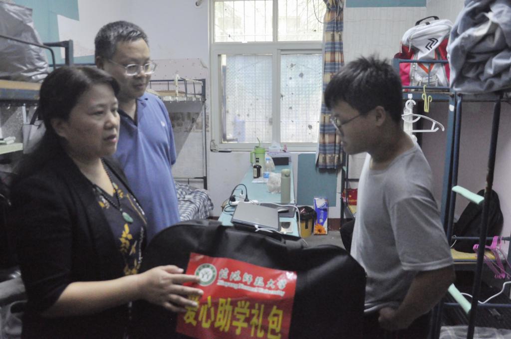 为及时了解新生的住宿和生活情况,确保新生入学工作顺利推进。9月10日,我院党委书记宋力,副院长刘明华,党委副书记朱明,团委老师和各班辅导员共同走访宿舍,并送上爱心助学大礼包。