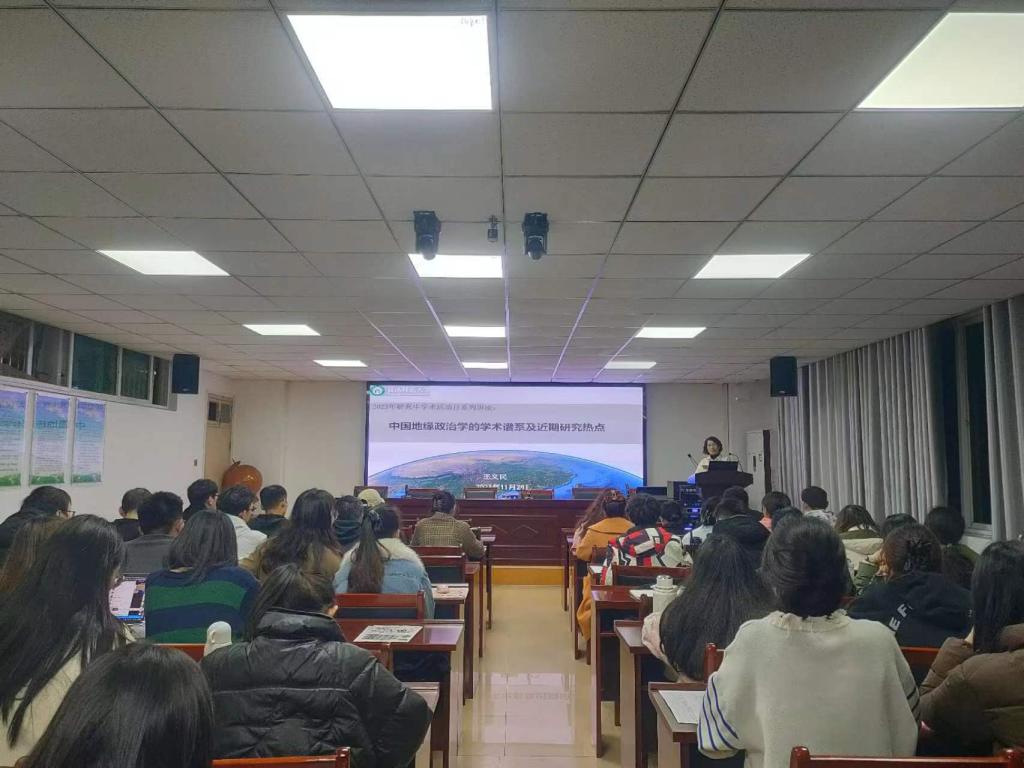 11月28日,我院于理科楼南楼410会议室举办了第6期贤岭学术沙龙,副院长王义民教授应邀做了题为“中国地缘政治学的学术谱系及近期研究热点”的学术报告。我院青年教师和硕士研究生70余人参加了报告会,会议由科研秘书闫军辉副教授主持。