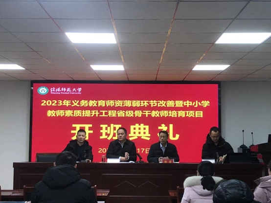 12月17日,我院承办的河南省2023年义务教育师资薄弱环节改善暨中小学教师素质提升工程省级骨干教师培育项目初中地理教师班开班仪式在理科楼南楼410会议室举行,院长牛继强出席会议并致欢迎辞,副院长颜俊、学业班主任张迁老师、生活班主任范宝伟老师参加了开班仪式。