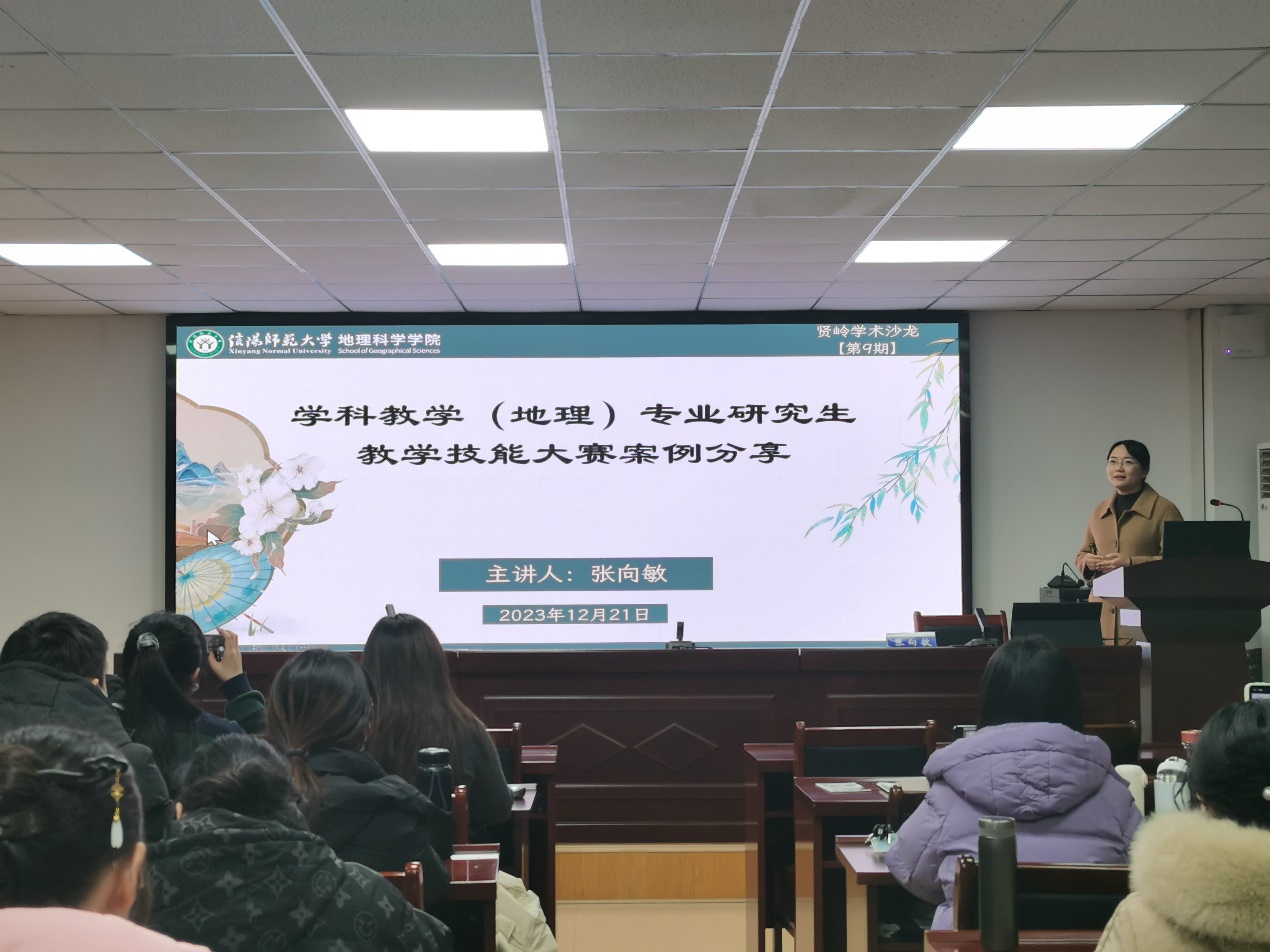为进一步提升我院研究生的教学技能和职业素养,提高研究生对教学技能大赛的认知和参赛积极性,12月21日,我院于理科楼南楼410会议室举办了第9期贤岭学术沙龙,张向敏博士应邀做了题为“学科教学(地理)专业研究生教学技能大赛案例分享”的学术报告,研究生80余人参加了报告会,会议由研究生班主任何伟纯博士主持。