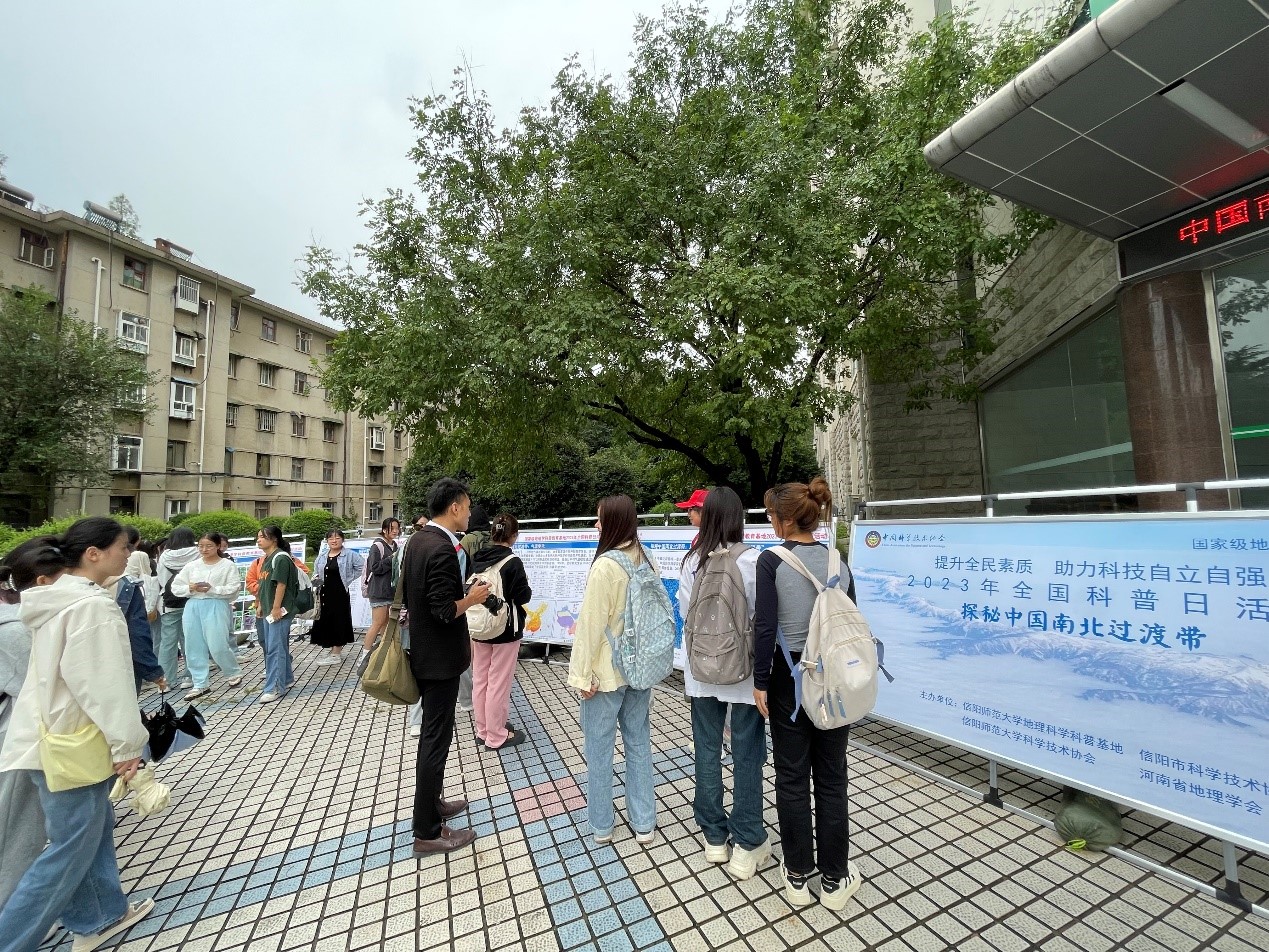 9月21日至9月22日,科普基地组织各社团开展“探秘中国南北过渡带”主题展板宣传活动。中国南北过渡带是重要的地理区域,也是地理学领域重要发现和研究热点地区,信阳市处于中国南北过渡带的核心地区。本次科普活动展板内容聚焦中国南北过渡带界线及划分、南北过渡带气候、土壤、植被等自然地理要素和建筑、生活习惯等人文特点的变化、南北过渡带科学研究前沿和生态文明建设等方面。9月21日,展板在太阳集团tyc234cc校园内展出,吸引了学校师生阅览。9月22日,展板在平桥区世纪广场展出,参与平桥区全国科普日主场活动,大量市民、中小学生驻足参观。本次活动向在校大学生和社会公众普及了南北过渡带的地理知识,有助于增进对中国南北过渡带的了解以及对本地区生态文明建设的重视。