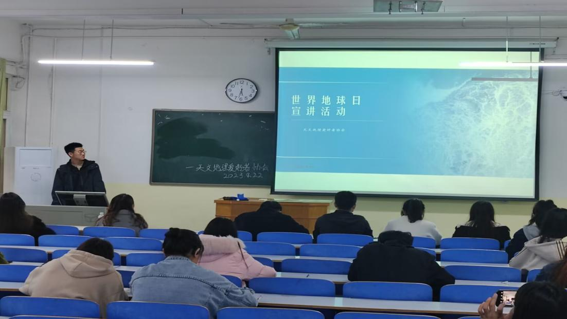 2023年4月22日,科普社团天文地理爱好者协会组织科普志愿者开展世界地球日主题科普活动,科普讲解员向241名参与学生详细介绍了地球目前面临的环境威胁,以及日常生活中保护环境的措施,呼吁大家共同参与保护地球。