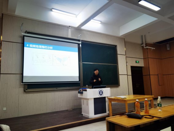 随后,张兴国老师从5大方面介绍了视频GIS的理论及应用:(1)视频GIS概念及发展历程介绍视频GIS产生的背景、意义、概念、国内外研究现状;(2)视频与地理空间数据互映射介绍视频与2D/3D地理空间数据的互映射方法;(3)视频时空信息提取及地图构建介绍视频/图像目标实时位置、轨迹提取及融合方法,并对实时地图可视化进行分析;(4)视频地理围栏分析介绍GIS视角下地理围栏分析的方法;(5)视频GIS应用示范介绍视频GIS在智慧城市、污染排放计算、病虫害监测中的应用。