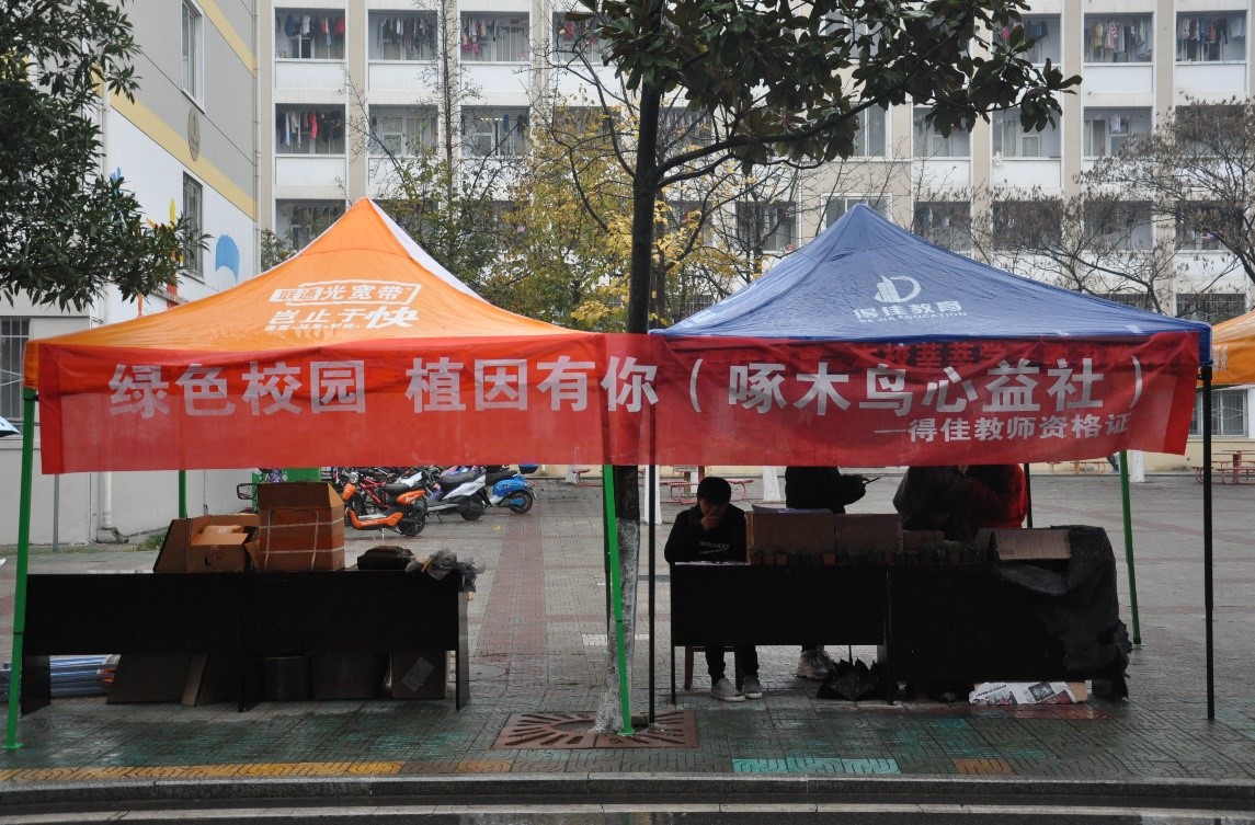 为加强师院学子环保观念,营造绿色校园,11月17日,太阳集团tyc234cc啄木鸟心益社于八餐小广场举办为期两天的“绿色校园,‘植’因有你”主题活动。