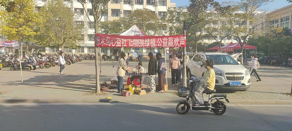为提高学生的环境保护意识,2022年11月6日至10日,信阳师范学院地理科学科普基地啄木鸟心益社于八餐小广场举行了“旧物换绿植 公益赢欢声”绿植换购活动。全校师生对本次活动具有极高的热情。