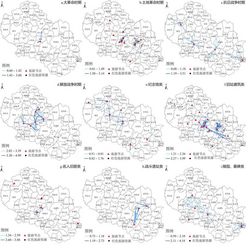 图2 不同历史时期、不同资源类型红色旅游资源网络结构可视化表达