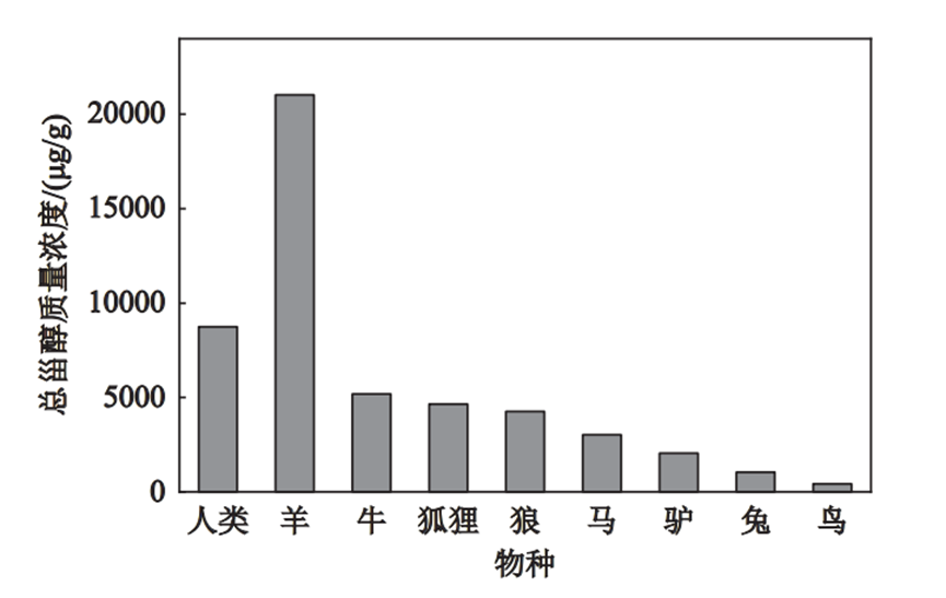 图1夏达错流域不同物种粪便的总甾醇质量浓度