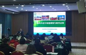 开班仪式后牛院长为各位学员做了题为《国内外初中地理课程与教学改革》的报告,报告从国内外教学体制、地理课程设置与教学改革三个方面为大家剖析了初中地理课程改革的特点与趋势,并鼓励学员在地理教学改革与创新方面勇于做出尝试。报告受到学员们的热烈欢迎!