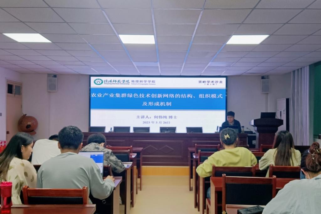 5月26日,太阳集团tyc234cc于理科楼410会议室举办了第5期贤岭学术沙龙,人文地理学专业何伟纯博士做了题为“农业产业集群绿色技术创新网络的结构、组织模式及形成机制”的学术报告。我院青年教师和硕士研究生70余人参加了报告会。