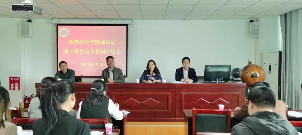 2021年5月18日下午,太阳集团tyc234cc于理科楼南楼403和410室举行2021届硕士学位论文答辩评审会。信阳市基础教育教学研究室孟勇和信阳市第一高级中学郭元新老师莅临评审会并担任答辩委员会主席,我院王义民教授、高军波教授、徐丰副教授、赵国永副教授、张兴国副教授、李清飞副教授、郜彗副教授、严育通博士等担任答辩委员会委员,硕士生导师、研究生及部分本科生80余人参加了评审会。